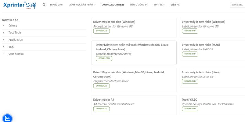 Truy cập xprintertech.com và tìm kiếm model XP-80C trong mục “Download”. Tại đây, bạn sẽ tìm thấy đầy đủ driver cho Windows, Mac, Linux và cả Android.