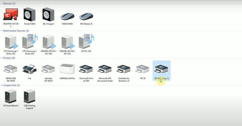 • Máy in Xprinter XP-80C phải xuất hiện trong danh sách thiết bị. Nếu không thấy, hãy kiểm tra lại cáp kết nối và nguồn điện.